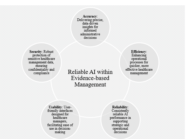 Figure 1: Key factors of reliable AI in Evidence-Based Healthcare Management.