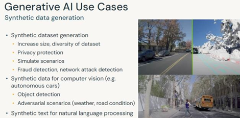 The detection and tracking of adversarial scenarios, as well as the conduct of natural language processing, are subjects that we shall briefly delve into. Let us now examine the advantageous aspects of generating synthetic data, which include the augmentation of data set size and diversity, privacy safeguarding for real-world data, and the simulation of scenarios for the purpose of testing and experimentation. Additionally, synthetic data generation aids in fraud detection and network attack detection, enhances computer vision applications such as autonomous cars, and improves the field of natural language processing. While creating synthetic data for tabular and textual purposes is feasible, generating synthetic data for computer vision remains a challenge. Despite the current technological limitations, the implementation of generative design can offer significant value to businesses.