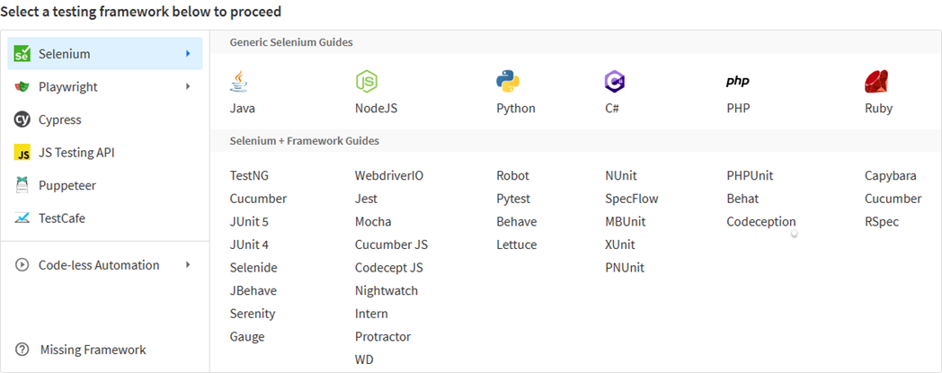 Figure 2: An overview of Testing Frameworks with programming