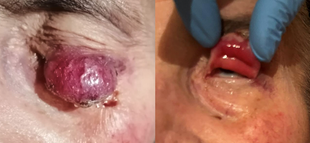 frosinone, italy unit with a violaceous mass on her upper eyelid (figure 1). During her hospitalization, an excisional biopsy