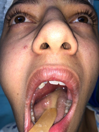 1). Rhinoscopy shows a bulging of the nasopharynx. Endo-buccal examination