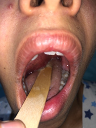 shows a bulging of the soft palate (Figure