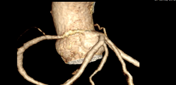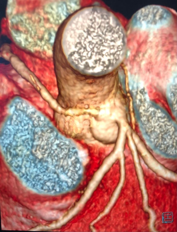 Coronary CT angiogram showing anomalous origin of the right coronary artery