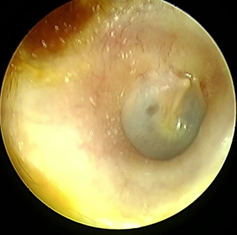 was no history of otitis media, ear trauma or otologic surgery. The history of