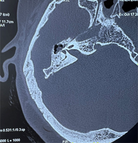 Congenital cholesteatoma is a condition primarily affecting children. 73% of patients who underwent surgery over a 24-year period were 15 years of age or younger, according to a sizable retrospective study14. The disease is generally in a more advanced stage when a patient is diagnosed, generally speaking15. When our case was diagnosed and operated on, he was 35 years old.