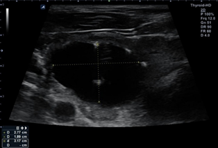 57-year-old male presented with a >180 mL predominantly cystic thyroid