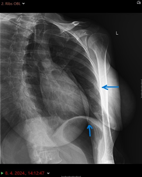 major displacement of the bone fragments. There are no signs of pneumothorax.