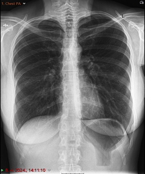 Figure 1. (A) Radiological image of the thorax. Chest oblique and