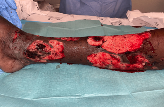 diseases, dermatology and plastic surgery teams deferred surgical debridement.