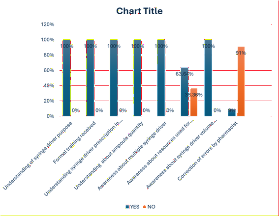 A questionnaire assessing knowledge, prescription practices and areas of difficulty related to syringe drivers was administered to 25 doctors, with 23 completing the survey. Following the initial assessment, all resident doctors received comprehensive training that included live demonstration sessions, one-on-one guidance and resources to foster confident and accurate prescribing practices.