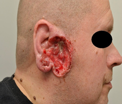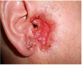 male had on the lateral right cheek in front of ear a nodular infiltrative BCC