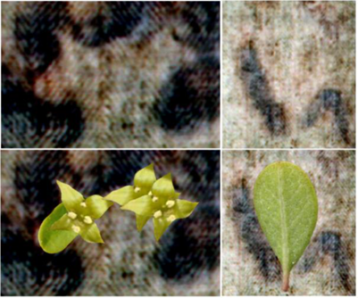 leafy branches, which left some leaves trapped between the hair, blood and