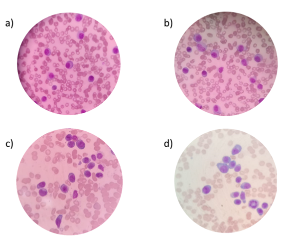 analyzes of peripheral blood (a, b, c) and bone marrow smears (d) of the