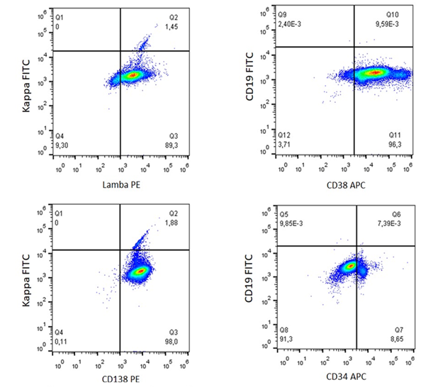 showing the expression of CD38 and CD138, and clonality of light chains, such