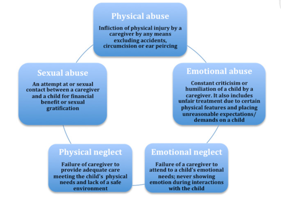 well-being. The different ways of childhood trauma are depicted in (Figure 2)22.