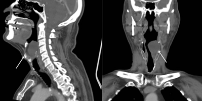throat clearing, in whom videolaryngoscopy and computed tomography identified a