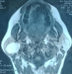 deep lobe. The lesion exhibited homogeneity and very high intensity on
