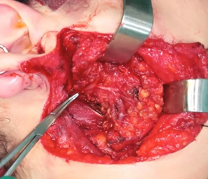 performed. Surgery began with a modified Blair’s incision, the parotid gland
