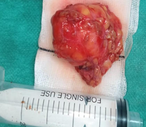 4,5x 3,3 x1,1 cm surrounded by salivary gland tissue. Thus, the frozen section