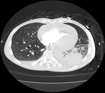 possible left lower lobe pulmonary embolism. A large pericardial effusion was