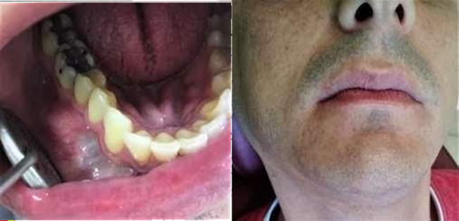 facial asymmetry, paresthesia, dental mobility, gingival discoloration and