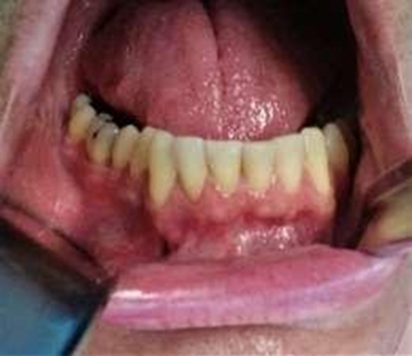 complaining of an intraoral mass, with a slight change of mucosa color in the