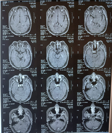 examination showed left axial proptosis. Orbital magnetic imaging revealed a 21