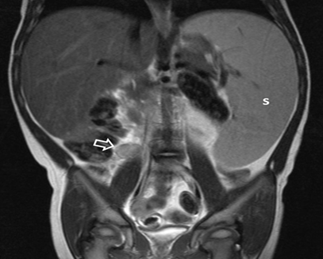 Figure 2: Abdominal MRI scan, Tw-w sequence, coronal plane. The