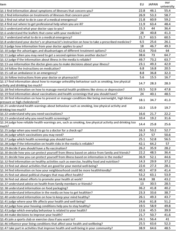 k, osaka w, togari t, et al. Comprehensive health literacy in japan is lower