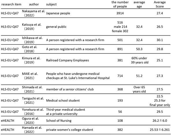 Conclusions: the reason why the relationship between health literacy and physical fitness was not found is thought to be due to the low level of health literacy among the japanese and the low utilization of health promotion and the lack of action to improve health.