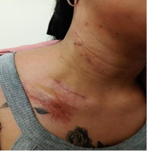 well as surrounding longitudinal scars. Furthermore, she presented a painful 1