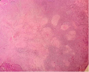 of the cervical lymph node with HE staining shows multiple granulomas of