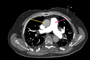 artery compared to aorta, which is highly suggestive of pulmonary arterial