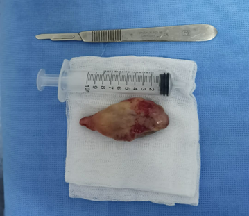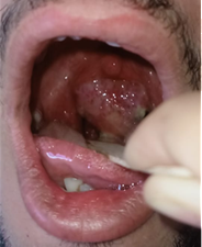of the tongue. Examination of the oral cavity identified reddish-grey polypoid