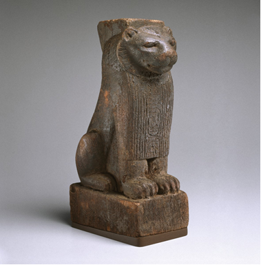 the depiction of a pharaoh as a lion; on its chest we see the pharaoh's name,