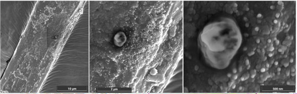 microcytes and small agglomerates coming from sample GF-3EF-3, a piece of