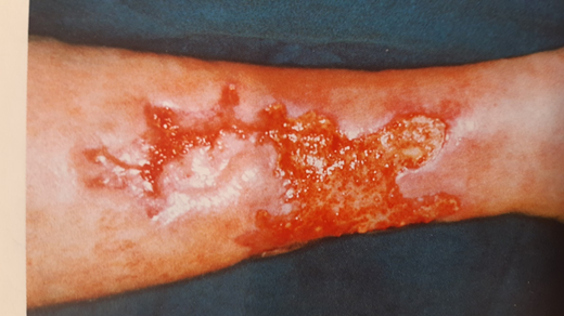 patient was a 64-year-old woman who developed difficult-to-treat ulcers on her