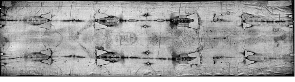 linen cloth, 4.4 m long and 1.1 m wide, on which the front and back images of a