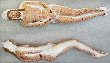 manikin obtained from a deep study of the ts where the author painted in white